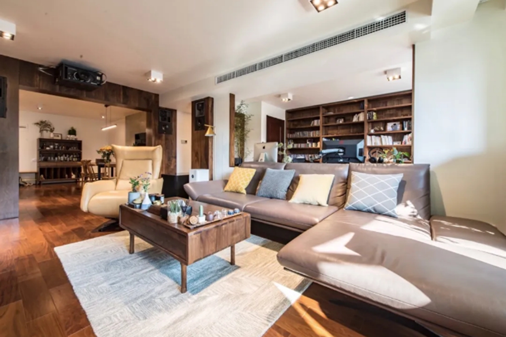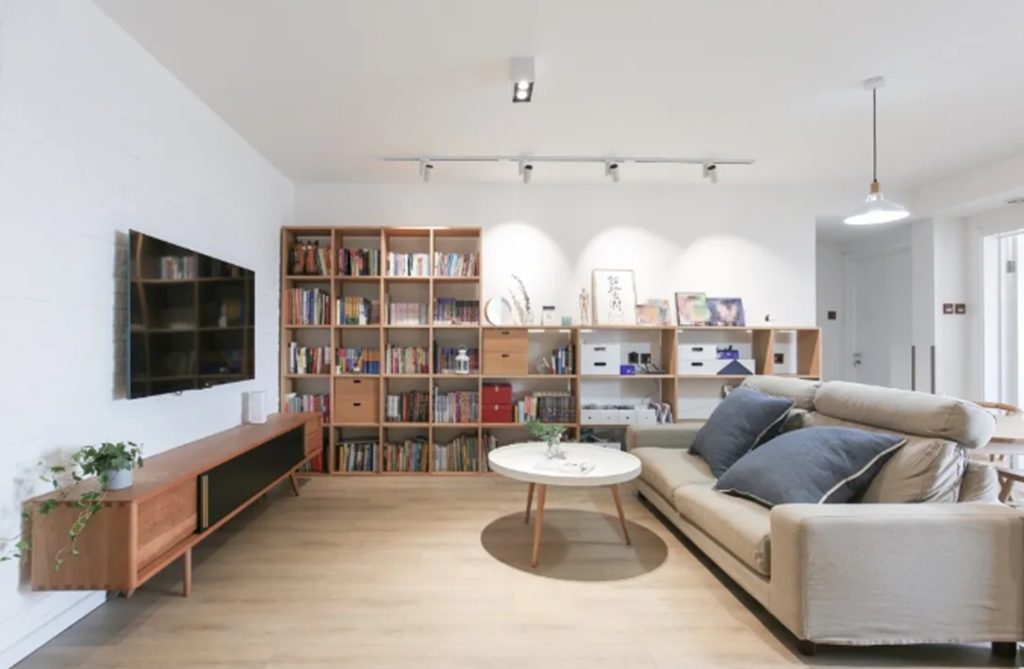 有些人不喜欢在家看电视,所以直接把电视墙改成沙发墙,沙发放在墙上,然后整个客厅成为一个宽敞的家庭活动空间,舒适自然。