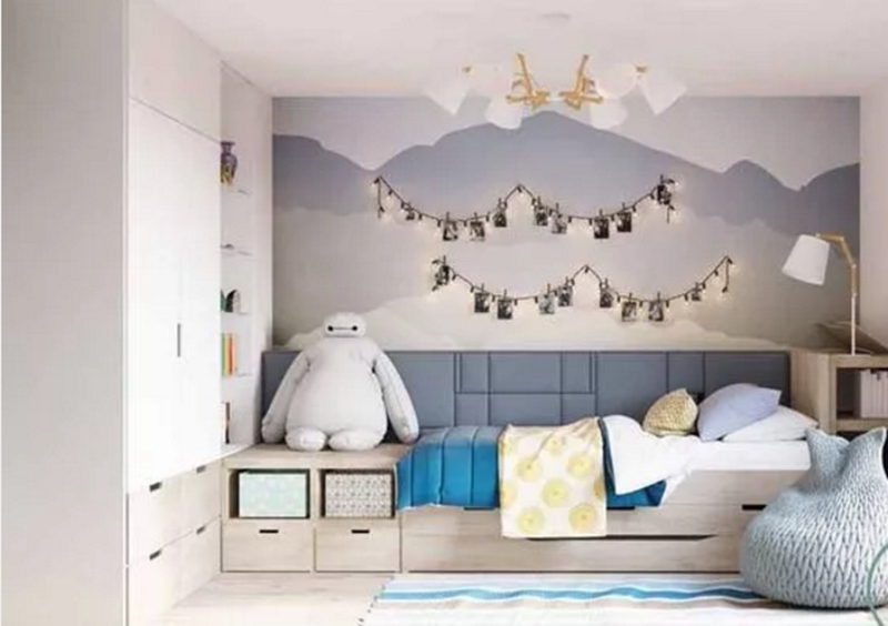 高度较低的榻榻米保证了孩子的安全,而铺满整个房间的榻榻米则拓宽了床的范围,让孩子感到自由。