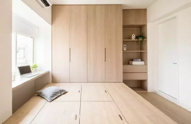 对于一些小房子来说,用榻榻米覆盖房间相当于增加额外的存储空间,加上定制的衣柜,升级到衣帽间,它的存储空间加倍,非常快乐。