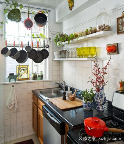 巧妙地利用了墙上的空间,这些厨房用具,不仅是工具,而且变成了装饰,很容易装饰生活!